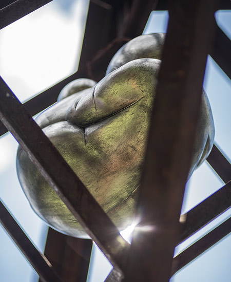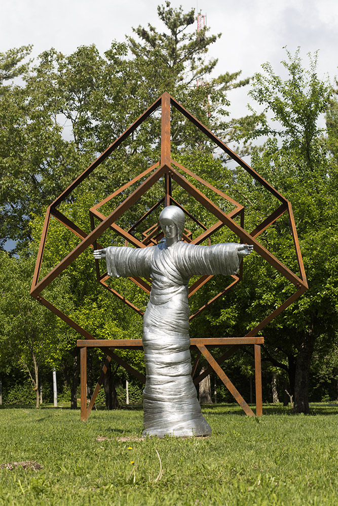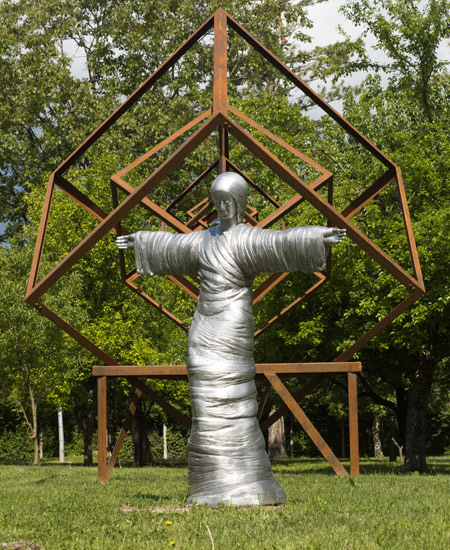 U umjetničkom projektu, arhitektonsko – skulpturalnoj instalaciji Ples života pleše Duša, i u neraskidivoj je vezi s tetraktisom i fetusom, zametkom, klicom novoga života u njegovom središtu. Ona, Duša, lagano se kreće unutar zakona, ovladala je njime i djeluje u skladu s njim. Izrađena je Duša u lijevanome aluminiju, s cizeliranim naborima draperije – ogrtača/plašta/ haljine u koju je umotana. Ona sugerira sastav od subatomskih čestica koje se poslaguju i ujedinjuju oko jedne magnetske, gravitacijske sile, oko kompozicijske osi. Ispod halje/ogrtača/plašta jasno se daju vidjeti konture tijela. Koljeno je u blagome kontrapostu, bokovi i kukovi modelirani po starom principu kugle. Okreće se u laganom plesnom, meditativnom lelujavom pokretu. Kao da je ispod ogrtača/plašta, halje/draperije tijelo Milojske Venere, blago se okreće oko struka sugerirajući pokret. Duša je, dakle, čista energija. Ona je akcelerirana spiralnim kretanjem, snažnim imaginarnim spiralnim kruženjem nakupljenih subatomskih čestica koje se okupljaju po božanskom zakonu ili fizikalnom zakonu prirode. Lagani spiralni pokret – ples. Na licu se čita spokoj, stabilnost, ispunjenje, zadovoljstvo. Plesni pokret je blag, lelujav. Ruke su raširene, ali opuštene. Oči su joj zaklopljene velikim kapcima, utonula je u svoju nutrinu, meditira. Kada bi otvorila svoje velike kapke, imala bi velike oči, baš onakve kakve su radili drevni Egipćani, ili majstori bizantskih mozaika, oči koje su usmjerene u vječnost. Nježnost, nestalnost i gipka pokretljivost sugerirana je i svjetlošću. Svjetlost se različito razlijeva po sjajnoj površini aluminija i kontrastira sa sjenama iz svakoga očišta, jer potrebno se kretati, hodati oko skulpture da bi se doživjela njezina dinamika. Svaka točka promatranja stvara novi, drugačiji doživljaj Dušine oživotvorene fluktuacije u prostoru. Isti je doživljaj kada se od nje udaljava pa ponovo približava. Ona je uvijek ovdje, a kao da nastaje i nestaje, pleše, giba se, aktivna je u našim percepcijama, jer uspješno sugerira svoju neuništivost, svoje vječno postojanje. Simbolički je to prikaz čovjeka, uvijek nanovo rađanoga i rođenog čovjeka, od pamtivijeka do danas, uvijek i zauvijek, po zakonima rađanja i smrti, a da uvijek i zauvijek ima dušu u tom novorođenom embriju, fetusu, i čovjeku. Dušin pokret – ples je prikaz univerzalnoga zakona življenja i postojanja koji se odvija u univerzumu.